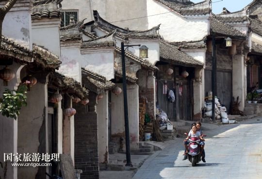 這條南北走向的小街,全長(zhǎng)約5里,現(xiàn)存明清時(shí)代的建筑700余間,大多保存完好。其中有豪紳商賈所建的會(huì)館、廟宇,也有一般的民房,建筑造型各有特色。古街的宅樓構(gòu)件,無(wú)不以石雕、磚雕、木雕藝術(shù)烘托而成。各種造型的石坊、門墩、柱礎(chǔ)、檐楣,可謂各具匠心,生動(dòng)逼真。