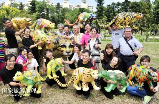 國家旅游地理 臺灣臺北9月18日訊 9月17日,人們在臺北市青年公園的云豹彩繪活動上合影。當(dāng)日,臺北市青年公園舉行“記憶與重生——臺北市青年公園公共藝術(shù)計(jì)劃”活動,讓市民們彩繪出自己心中已經(jīng)滅絕的臺灣云豹的模樣,以此呼吁環(huán)保。 /新華社發(fā)(吳景騰 攝)