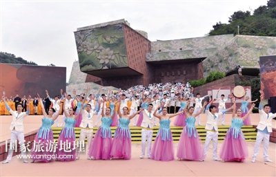 開幕式上,以“慈光千年·與夢同行”為主題的旅游演出《一山·一佛·一世界》,分為序——《慈光·千年》、上篇——《一山·情依舊》、中篇——《一佛·慈天下》、下篇——《一世界·心若在》、尾聲——《與夢·同行》五大段落,通過梵音梵樂、音樂舞蹈等形式,精彩演繹樂山彌勒文化、普賢文化、漢唐風韻等文化內(nèi)涵。/三江都市報