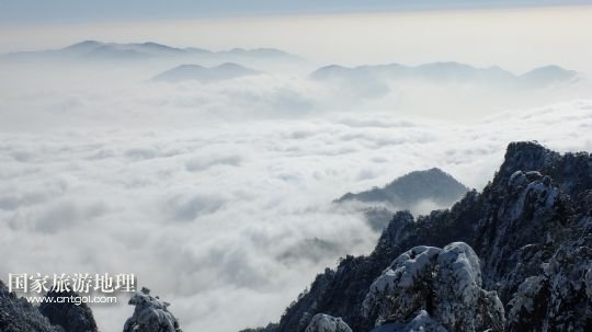 國(guó)家旅游地理 安徽黃山12月22日訊 這是12月20日在安徽黃山拍攝的云海景觀。當(dāng)日,雪后放晴的安徽黃山風(fēng)景區(qū)云海翻騰,美不勝收。 /新華社發(fā)(水從澤 攝)