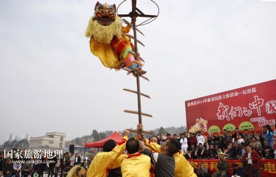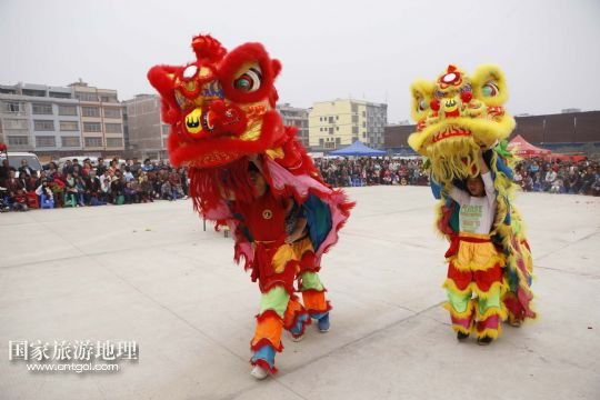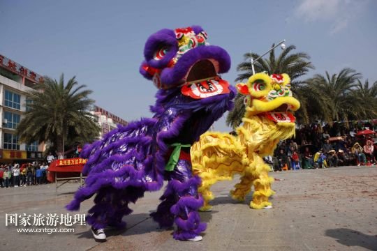 國(guó)家旅游地理 廣西來(lái)賓2月5日訊 2月4日,廣西象州縣的農(nóng)民舞獅隊(duì)在參加獅王爭(zhēng)霸賽。春節(jié)期間,廣西壯族自治區(qū)來(lái)賓市象州縣舉行獅王爭(zhēng)霸賽,來(lái)自該縣的32支農(nóng)民舞獅隊(duì)一展技藝、爭(zhēng)奪獅王,為當(dāng)?shù)厝罕姭I(xiàn)上一場(chǎng)精彩的民俗文化大餐。 /新華社發(fā)(龔堅(jiān) 攝)