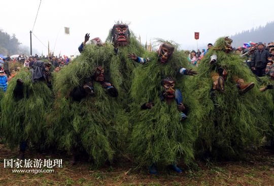國家旅游地理 廣西柳州2月20日訊 2月16日,一名苗族青年戴著面具、披著芒草,扮成 “芒哥”跳舞。當日是農(nóng)歷正月十七,地處深山的廣西柳州市融水苗族自治縣安陲鄉(xiāng)在江門苗寨舉行傳統(tǒng)的“芒哥節(jié)”。眾多苗族男性青少年戴著面具、披著芒草、扮成“芒哥”起舞,為人們驅(qū)邪避禍,送去新春的祝福。據(jù)介紹,演“芒哥”是當?shù)孛缂胰霜毦咛厣男麓簜鹘y(tǒng)活動之一。 /新華社發(fā)(龍濤 攝)