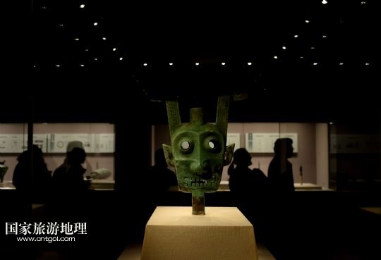 3月1日,人們在江西文物精品展上參觀雙面神人青銅頭像。