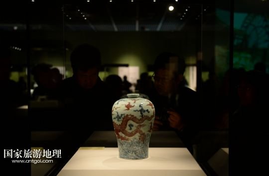 國家旅游地理 北京3月3日訊 3月1日,人們在江西文物精品展上參觀明永樂青花釉里紅云龍紋梅瓶。 當日,由江西省委宣傳部、省文化廳主辦的“江西風景獨好”——2014年北京·江西文化月活動在北京首都博物館開幕。此次活動將持續(xù)三個月,包括江西文物精品展、景德鎮(zhèn)陶瓷藝術家精品展等4個展覽及歌劇《回家》、贛劇《荊釵記》等7臺文藝演出,集中展示江西文化體制改革的重要成果及歷史文化底蘊。/新華社記者金良快攝
