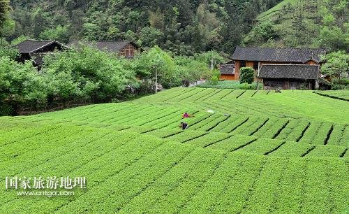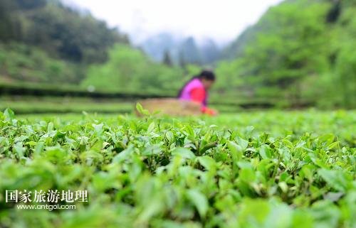 4月27日,柳溪村的村民在村內的茶園采茶。
