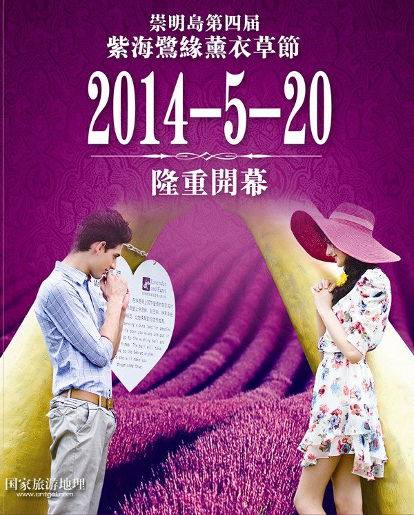 5月20日至6月20日,為期1個月的2014上海崇明島第四屆薰衣草節(jié)將在崇明島舉行,市民不用去法國普羅旺斯就可欣賞到紫色花海的美景了。此次活動地點(diǎn)設(shè)在中國最美麗的“花園”——上海崇明島上的香草種植園紫海鷺緣浪漫愛情主題公園內(nèi)。