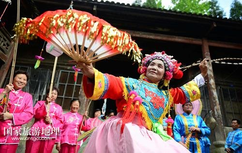 國家旅游地理 湖北恩施5月28日訊 5月27日,湖北省利川市柏楊壩鎮(zhèn)柏壩楊村的民間藝人陳文菊在表演利川燈歌的代表作《龍船調(diào)》。利川燈歌起源于湖北省恩施土家族苗族自治州利川市柏楊壩鎮(zhèn)一帶,距今約300多年歷史,2011年入選第三批國家級非物質(zhì)文化遺產(chǎn)名錄。有記載稱,從清朝開始,當(dāng)?shù)厝罕姺昴赀^節(jié)、喜慶集會、玩彩龍船時(shí)都要唱燈歌。如今,在柏楊壩鎮(zhèn),有一些熱愛民族文化的老藝人,用心口相傳的形式傳唱利川燈歌,釋放土家人豁達(dá)、幽默的人生情懷。利川燈歌具有很高的民族文化藝術(shù)價(jià)值,《龍船調(diào)》《篩子關(guān)門眼睛多》《打把扇子送情》等一批燈歌旋律優(yōu)美、歌詞詼諧生動,深受人們喜愛。新華社發(fā)(楊順丕 攝)