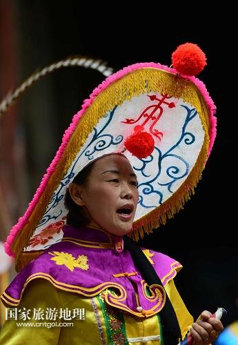 5月27日,湖北省利川市柏楊壩鎮(zhèn)柏壩楊村的民間藝人陳文菊在表演利川燈歌的代表作《龍船調(diào)》。