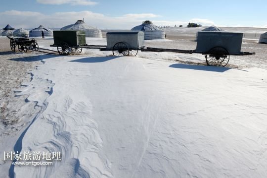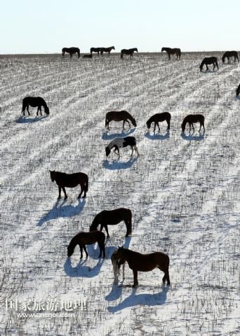 初冬的內(nèi)蒙古呼倫貝爾草原 蔚藍(lán)的天空映白雪(圖)