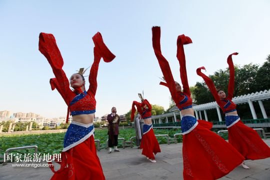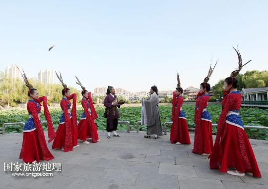 6月13日,在山東省滕州市魯班紀(jì)念館前,滕州柳琴劇團(tuán)演員在彩排柳琴戲《墨子與魯班》。