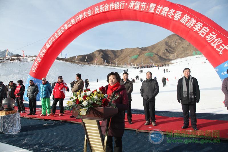 何偉局長用“祁連歡歌迎盛會,冰雪旅游聚英豪”來稱贊本次活動。她在致辭中指出,在張掖扁都口隆重舉行“中國·民樂扁都口全國冬季山地戶外大會暨甘肅省冬春旅游季活動”啟動儀式,這是我省體育、旅游兩個產(chǎn)業(yè)融合發(fā)展的重要舉措,也是我省淡季旅游市場啟動的重要標(biāo)志。冰雪旅游是品位的追求,戶外運(yùn)動是勇者的選擇。甘肅旅游資源十分豐富,冬季旅游資源獨(dú)具特色。為了給激情飛揚(yáng)的旅游愛好者獻(xiàn)上豐盛的冬季旅游盛宴,全省各地都在積極謀動。特別是張掖市舉全市之力,精心策劃,全力推動,不僅在大景區(qū)建設(shè)等整體旅游工作上走在全省前列,而且在淡季旅游開發(fā)上搞得紅紅火火,做出了示范。在張掖啟動全省“冬春旅游季”活動,就是為了借張掖冬季旅游的火熱勢頭,帶動全省淡季旅游持續(xù)升溫。希望全省旅游系統(tǒng)以本次活動為契機(jī),整合資源,相互借勢,形成合力,共同做熱、做大甘肅冬季旅游市場,使甘肅豐富多彩的冬春旅游資源轉(zhuǎn)化為旅游發(fā)展新的亮點(diǎn)、經(jīng)濟(jì)增長的新優(yōu)勢。