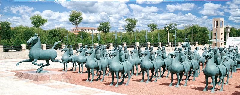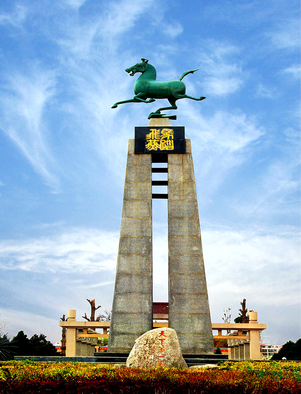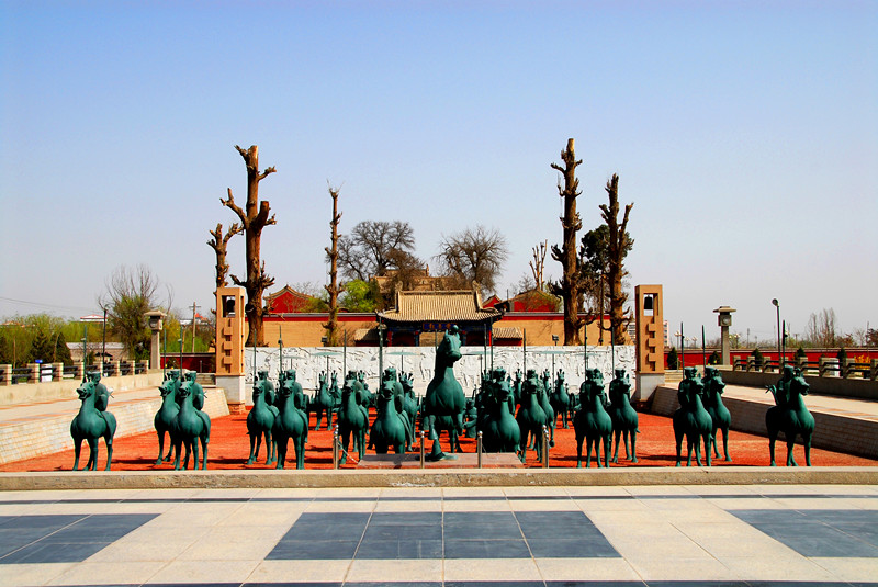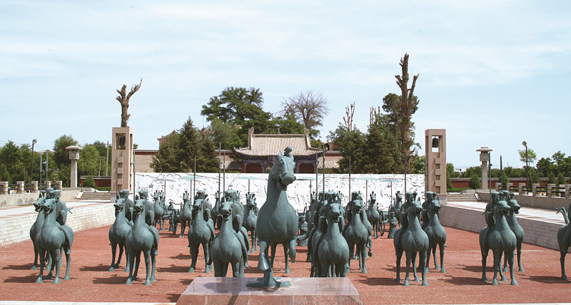 圖為中國旅游標(biāo)志馬踏飛燕出土地、全國重點文物保護單位、國家4A級旅游景區(qū)——武威雷臺景區(qū)